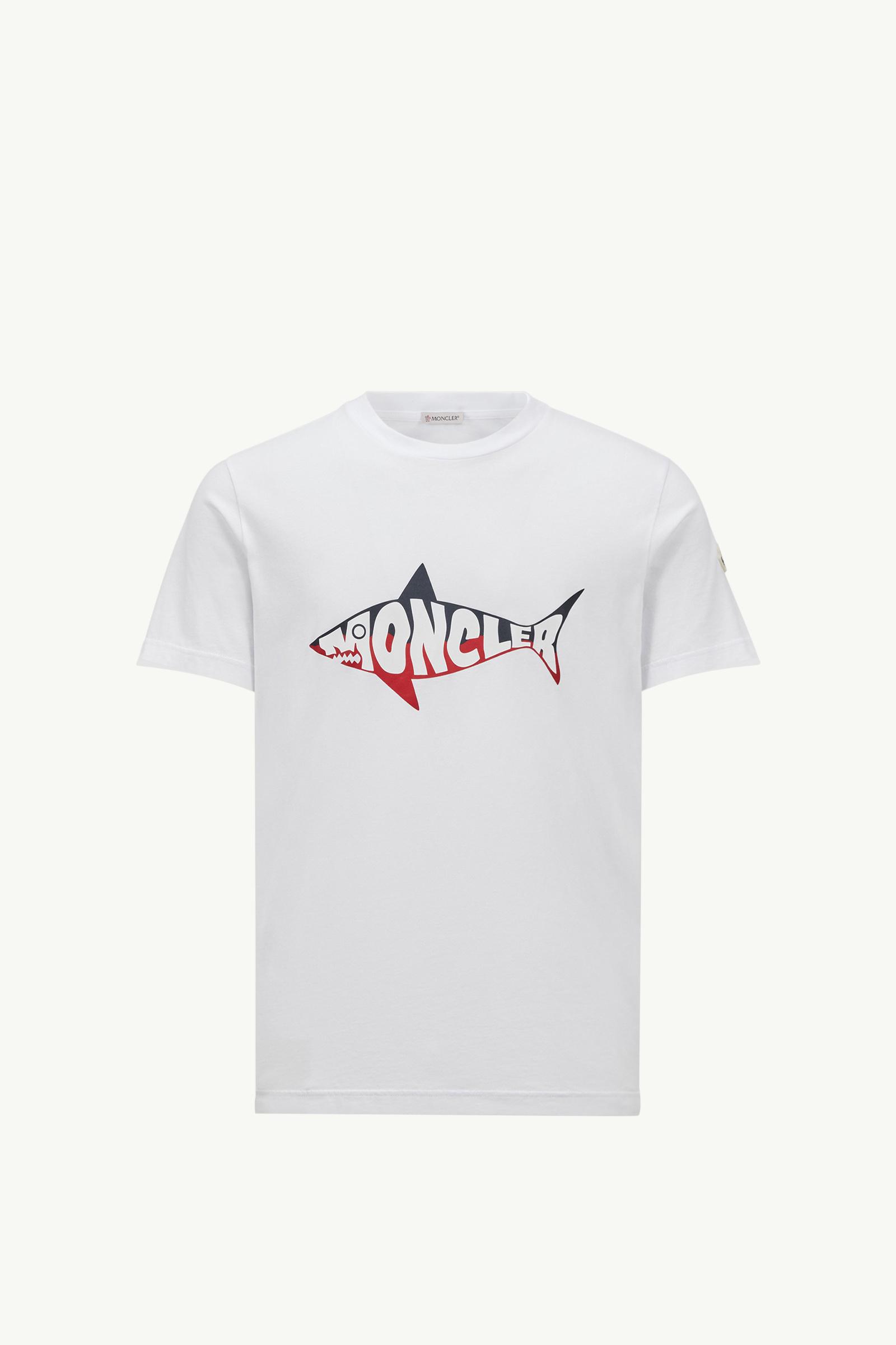 A summery interpretation of the logo, this short sleeve t-shirt for men features a shark motif.