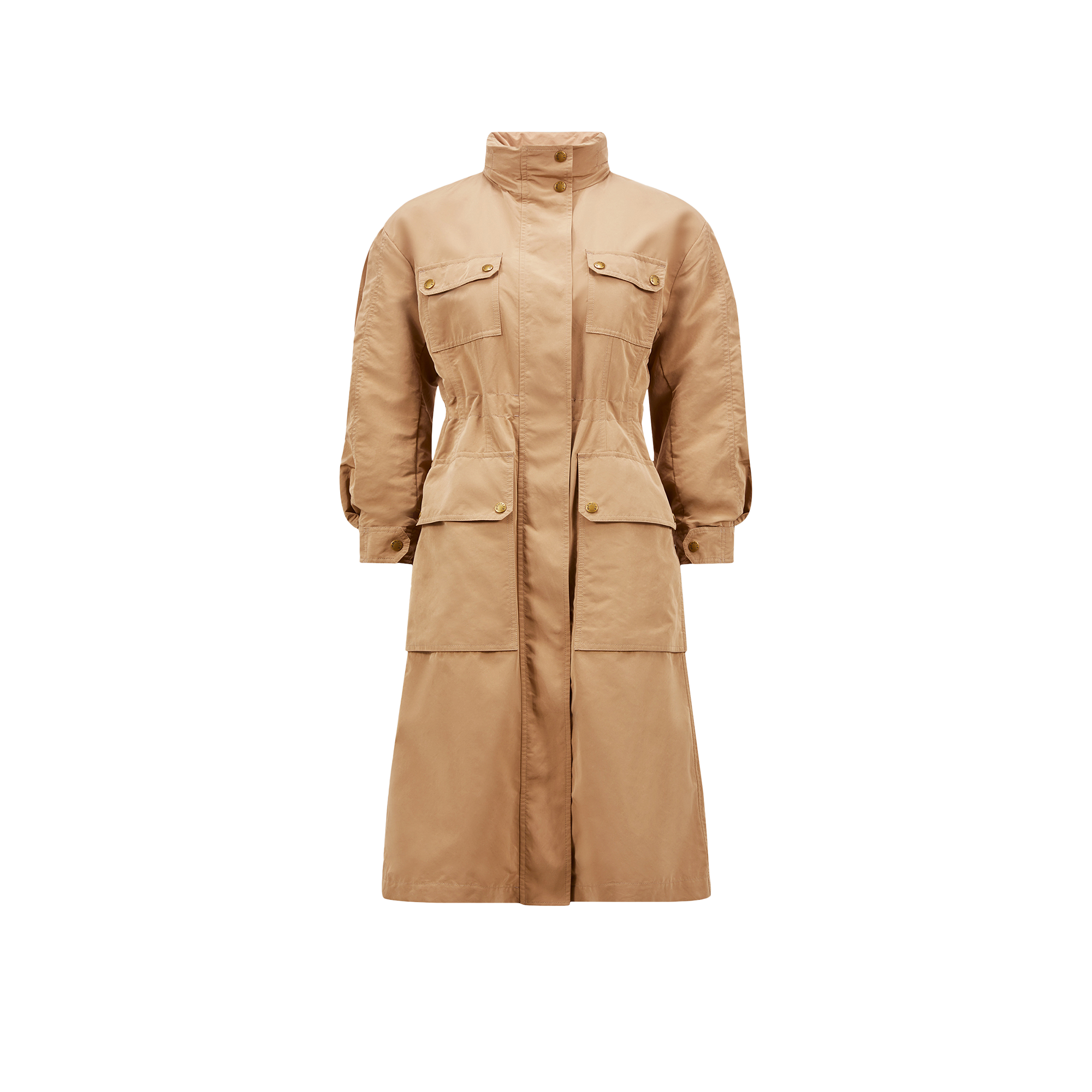 Functionality rises to the fore in the Nantes parka. The long coat is crafted from a durable nylon blend with a comfortable feel. Inspired by the practical field jacket, spacious patch pockets enhance the design. A pull-out hood and adjustable waistline complete the style.