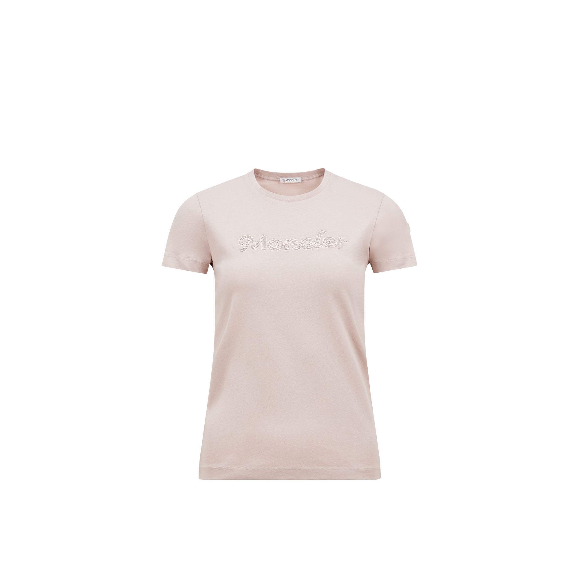A new interpretation of a wardrobe essential, this women's t-shirt reimagines the logo with embroidered pearls.