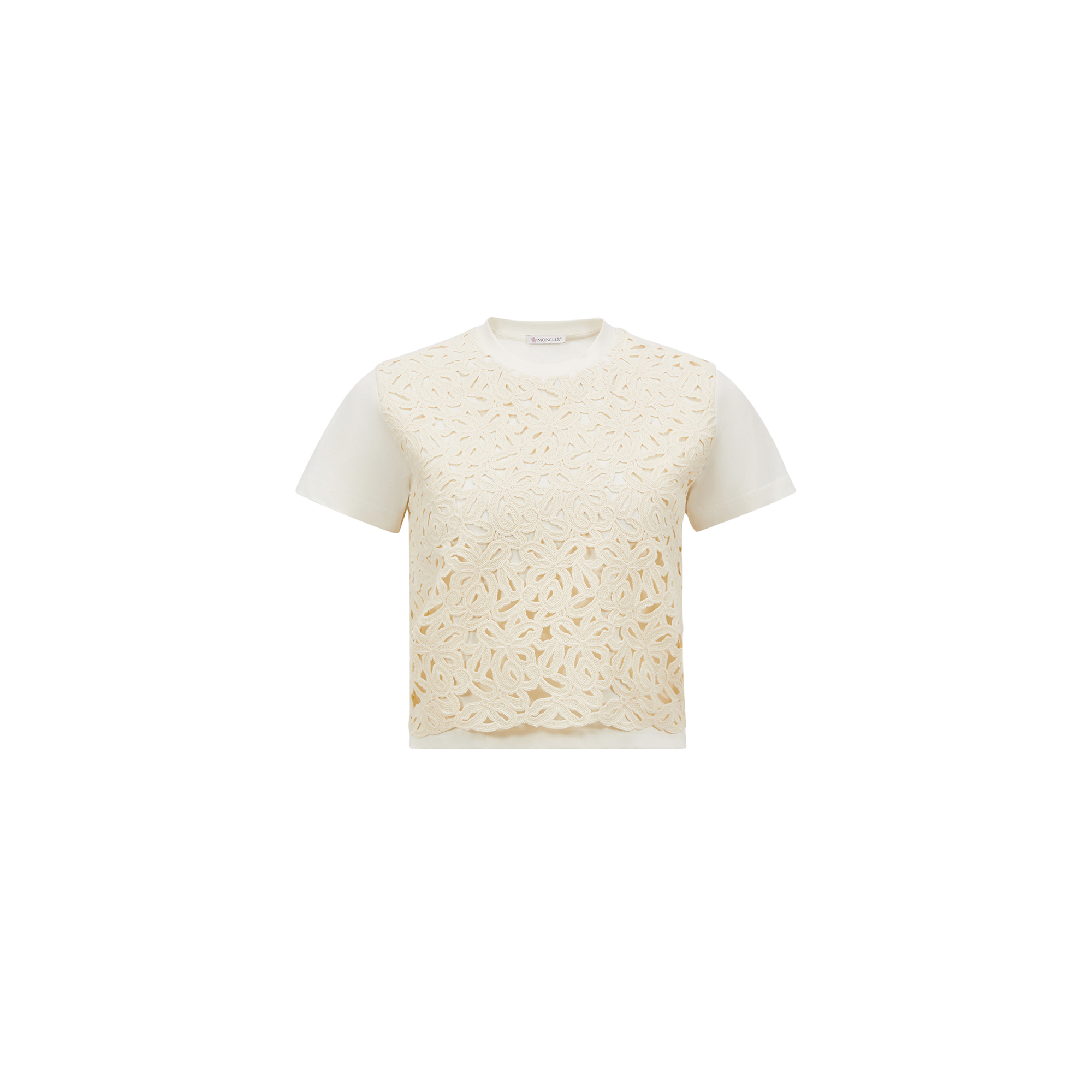 A precious take on a casual staple, this cotton t-shirt for women features a floral macramé front.