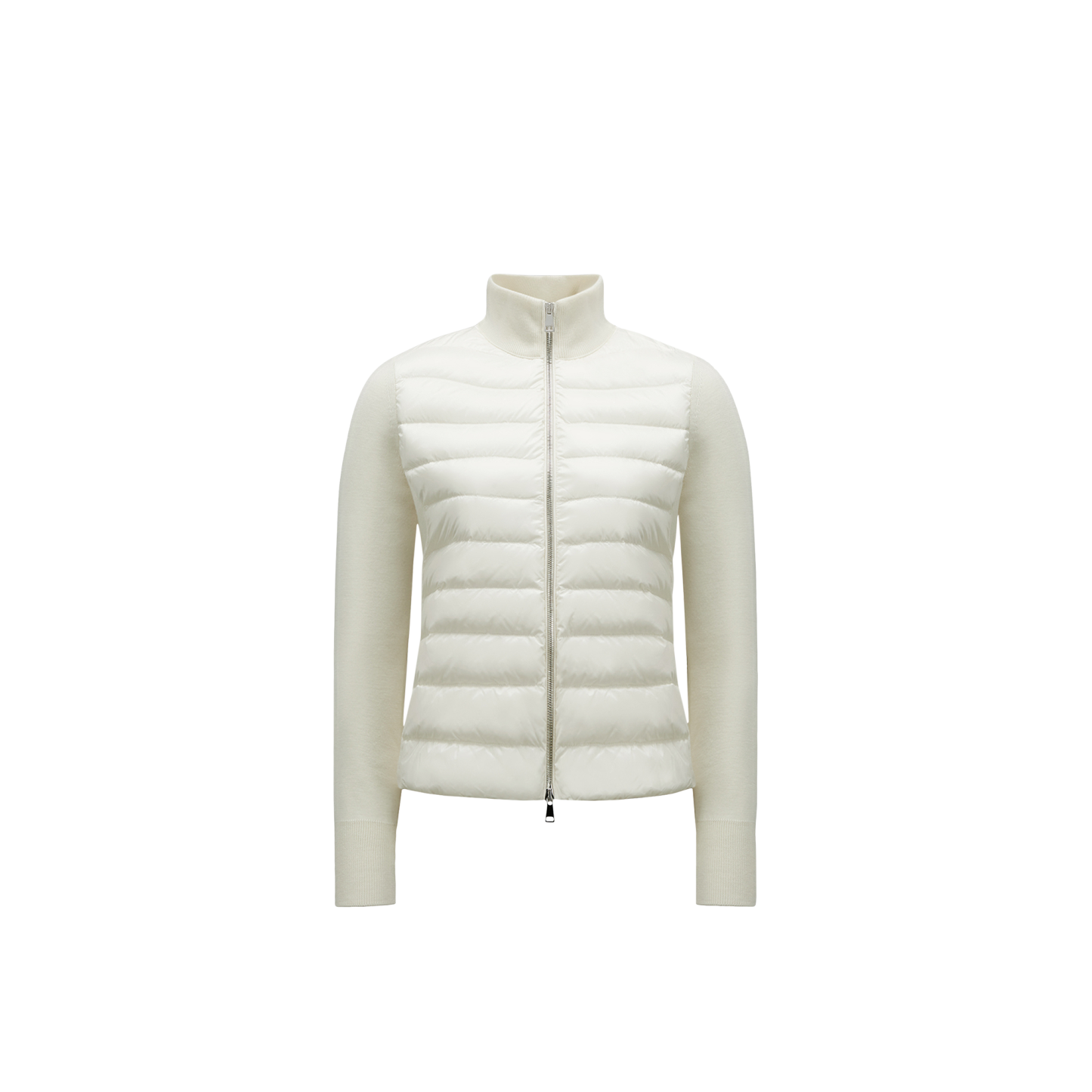 Crafted from wool, this cardigan is enhanced with a down-filled longue saison front. The lightweight knit comes in a high neck, zip-up silhouette.