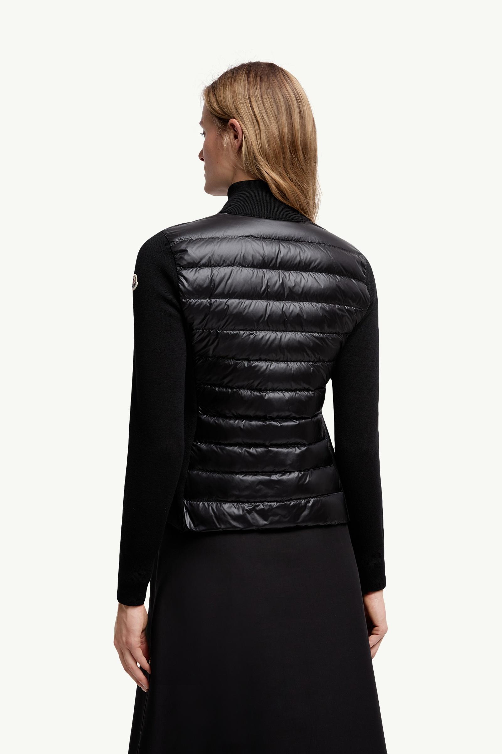 Easily doubling as outerwear when the weather permits, this wool cardigan for women is enhanced with a down-filled front.