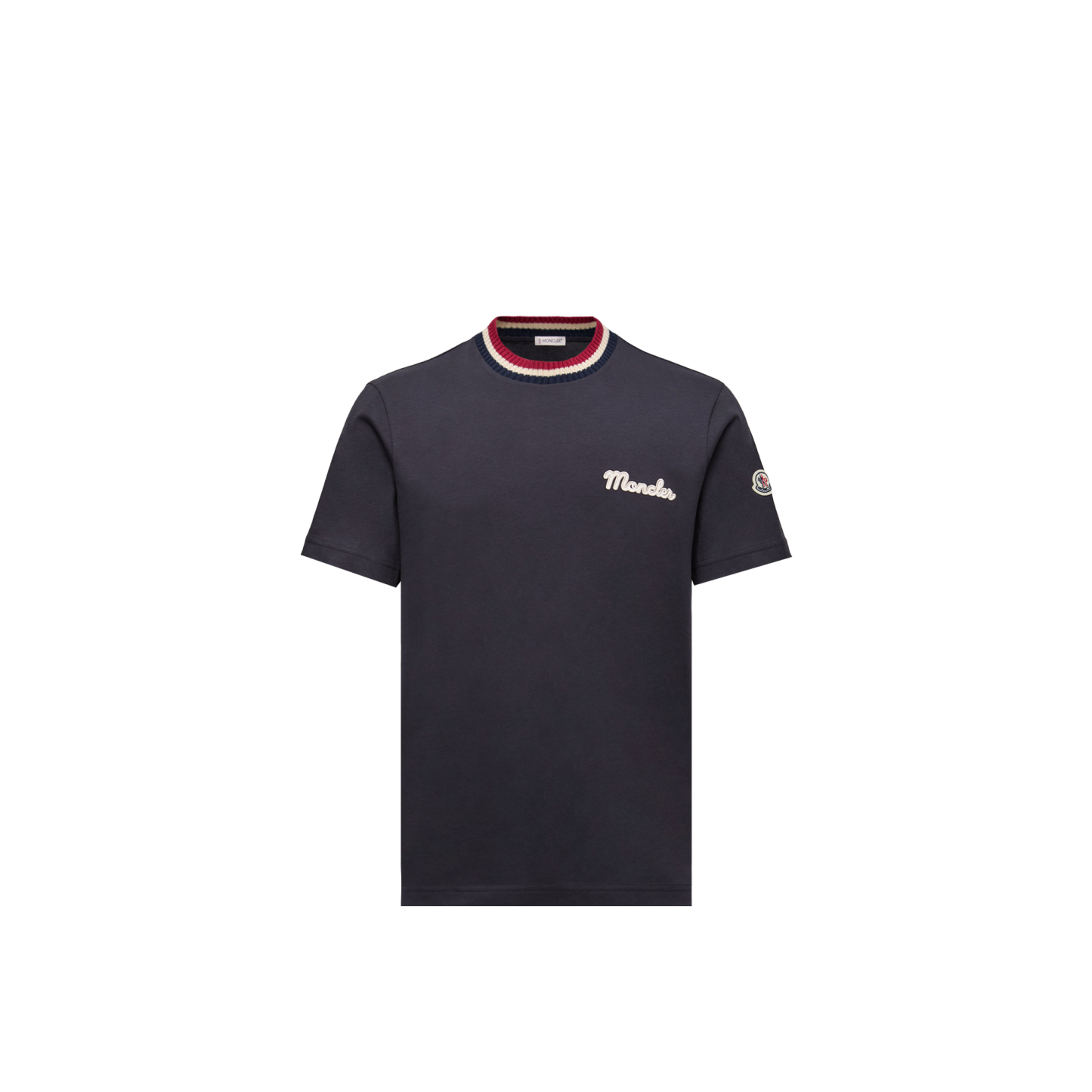 Playing with different textures, this cotton t-shirt is accentuated by a knit neckline. A subtle finishing touch, an embroidered logo completes the design.