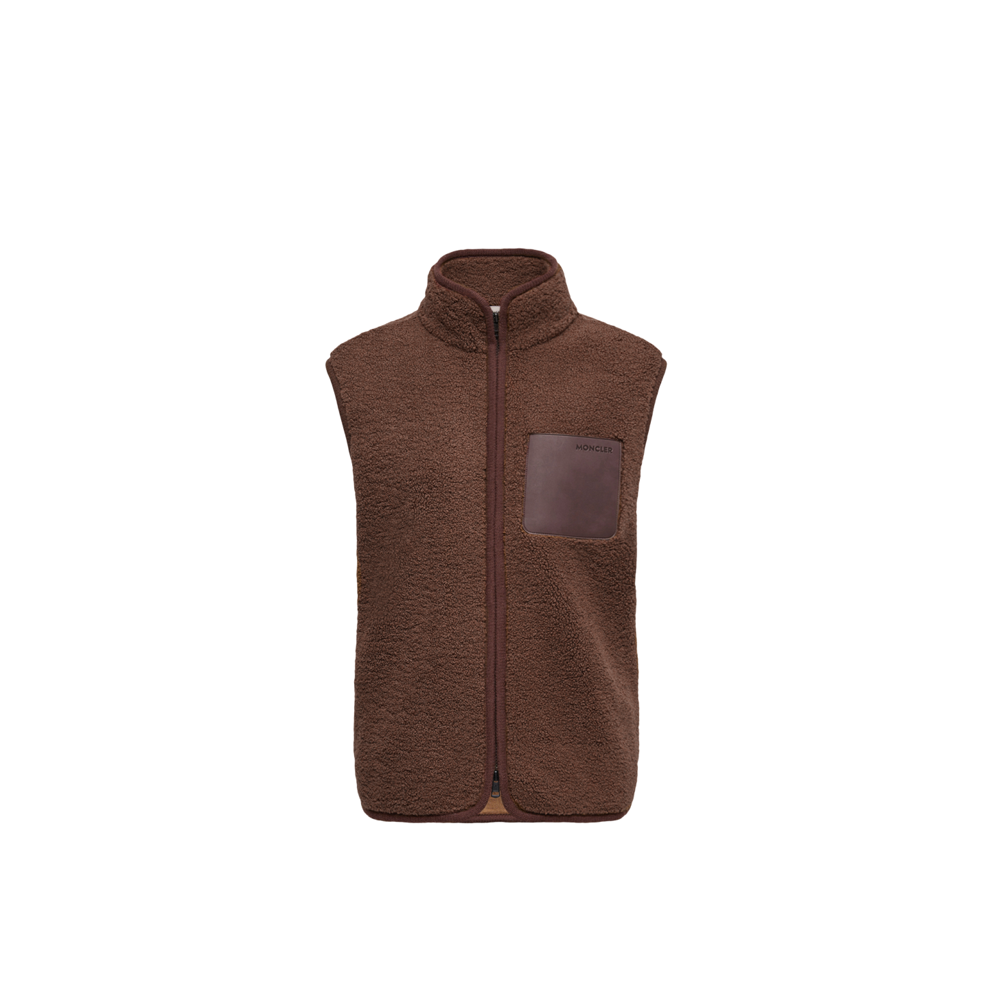 A cocooning design, this vest from the men's collection combines plush teddy fleece with accents in nubuck leather.
