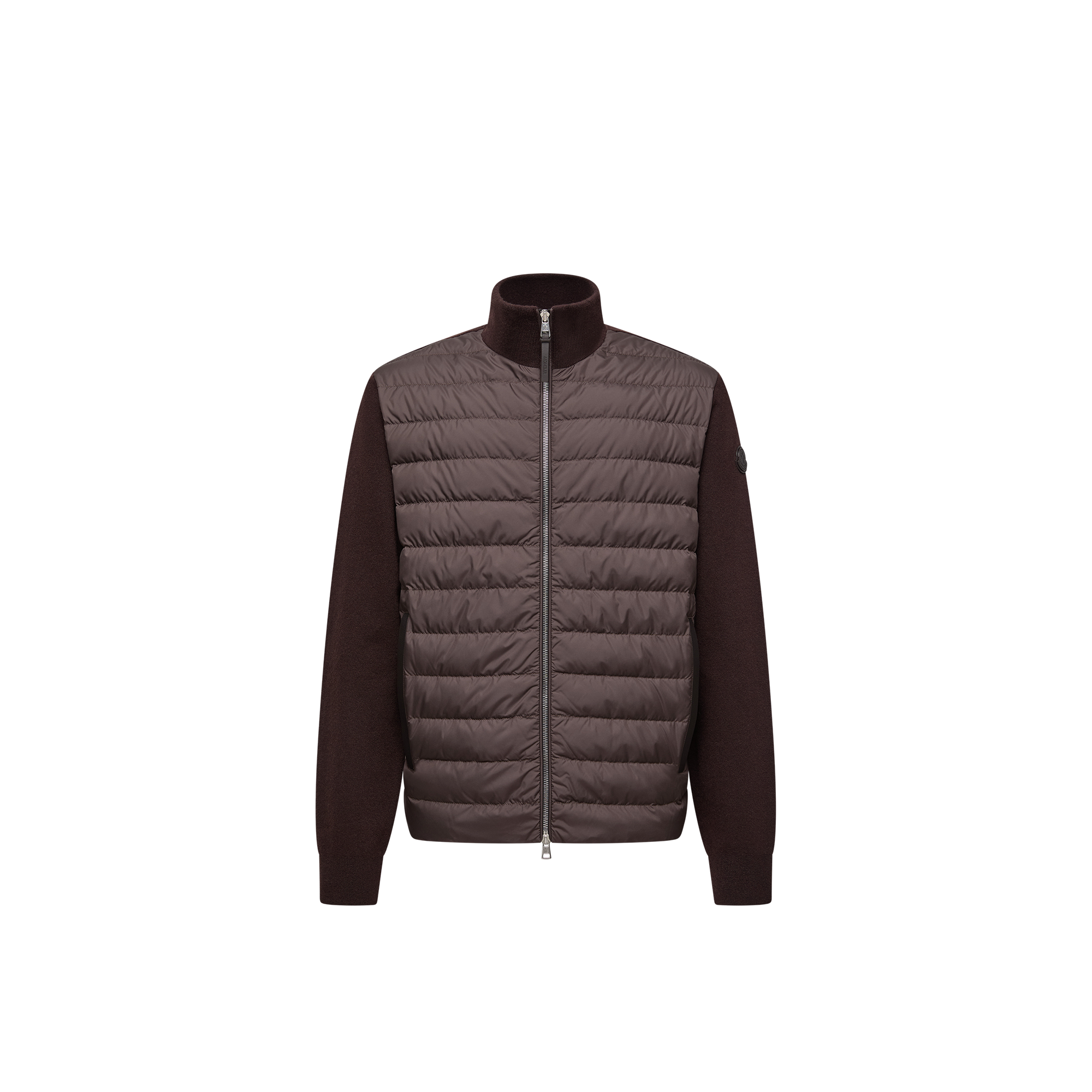Wool and cashmere are paired with a warm down fill in this cardigan. Featured in a zip-up silhouette, a high-neck knit collar adds extra protection from the elements. The lightweight knit is finished with a supple leather trim.