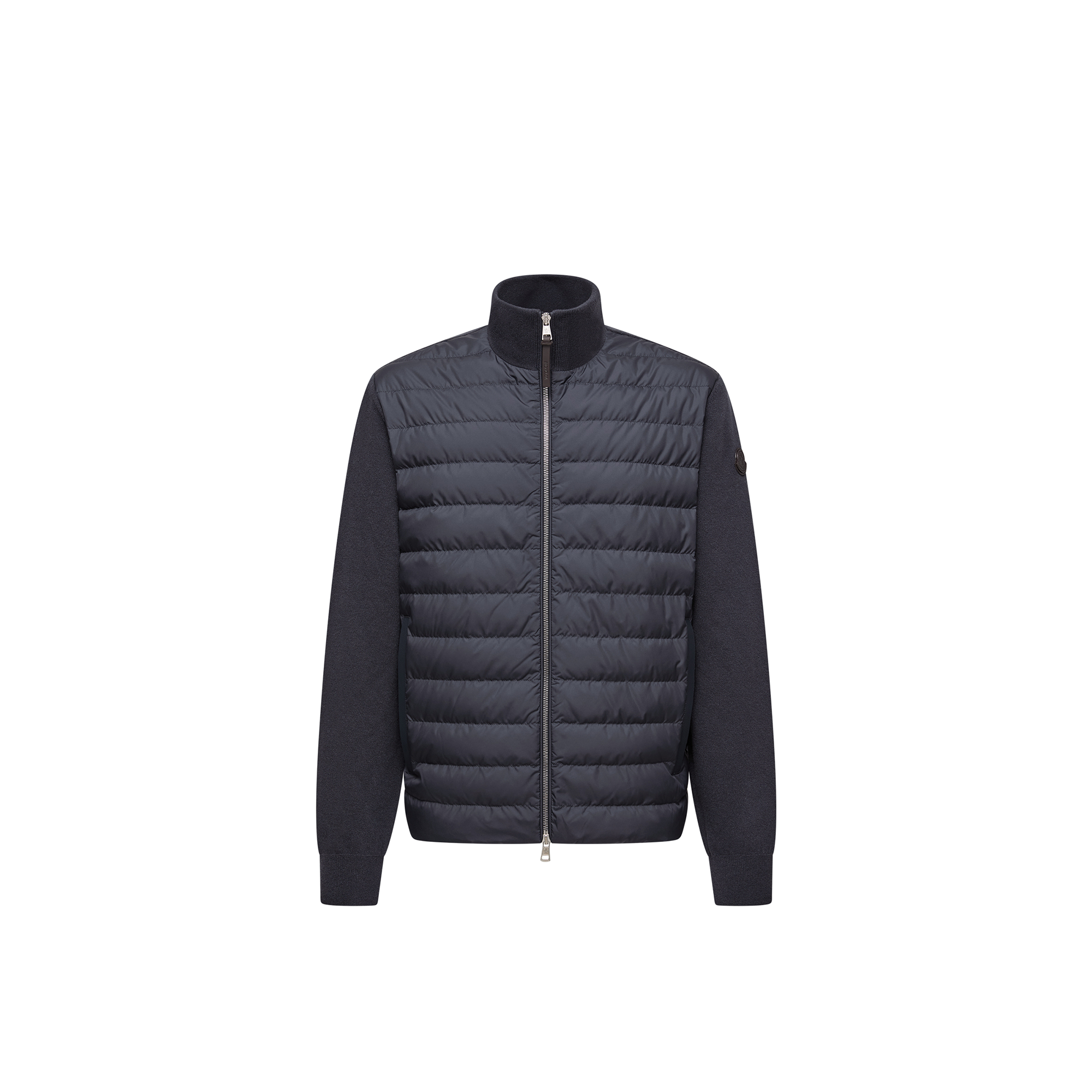 Wool and cashmere are paired with a warm down fill in this cardigan. Featured in a zip-up silhouette, a high-neck knit collar adds extra protection from the elements. The lightweight knit is finished with a supple leather trim.