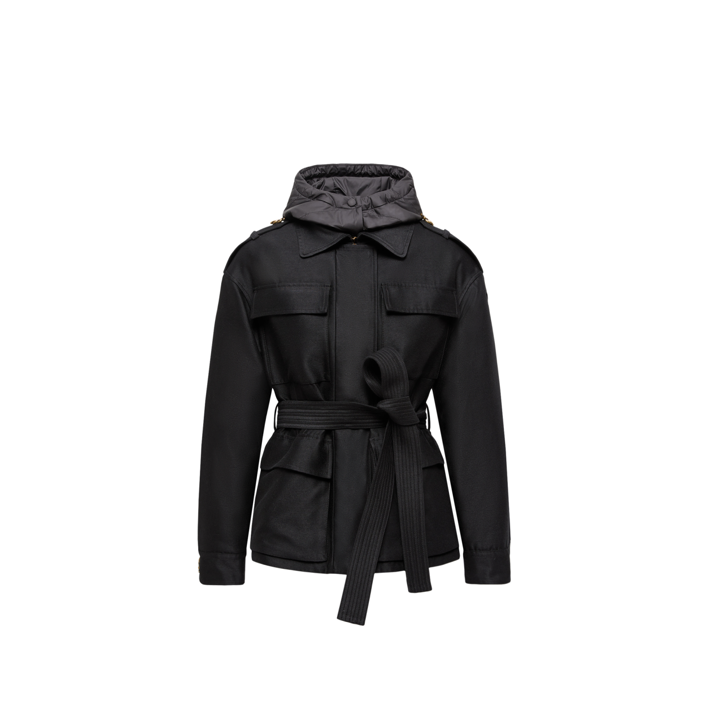 An elevated interpretation of the field jacket, the Essalois is crafted from twill. The material imbues the short down jacket with a silky soft feel and satin finish. Allowing the puffer to adapt to different weather conditions, a detachable hood adds versatility. A belt completes the warmer, accentuating the waist.
