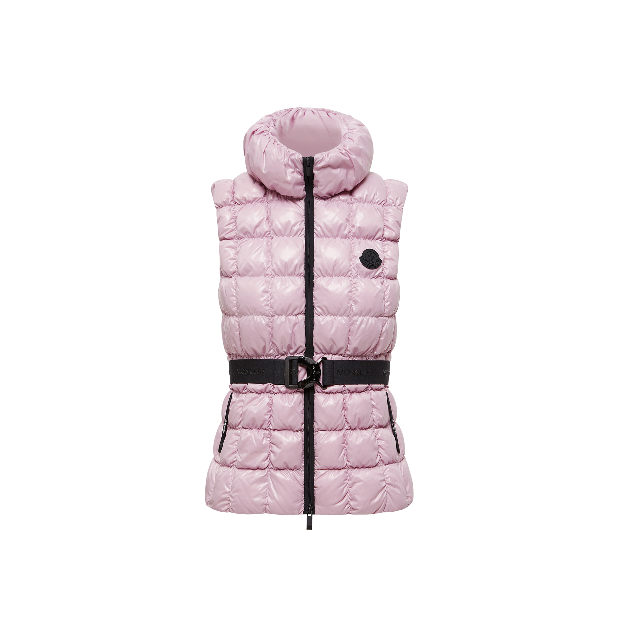 A visually striking piece, the Emilion down vest interprets graphic quilting with its squared pattern. Crafted from nylon laqué, the puffer vest boasts an elastic belt that enhances the flared silhouette.