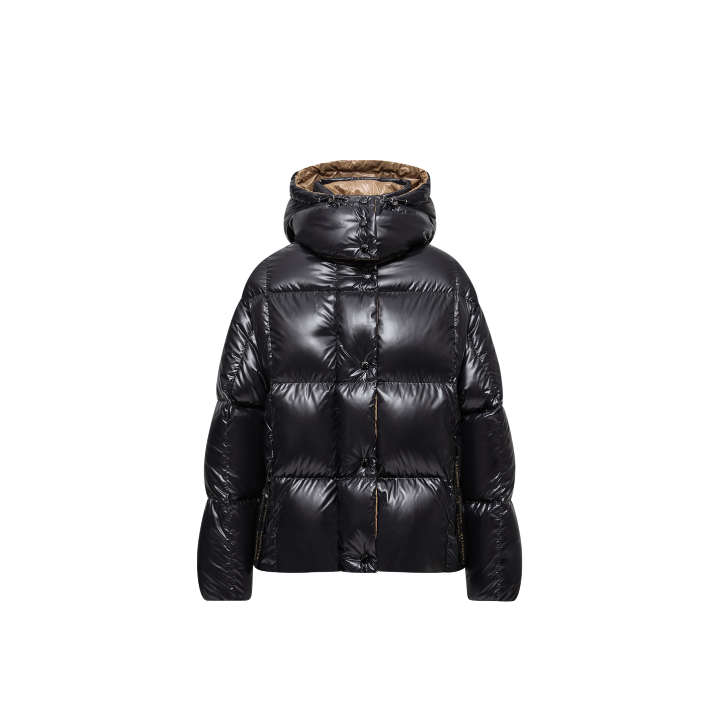 This Parana down jacket is characterized by its precious shiny nylon laqué texture. The short puffer's grid quilting provides warmth without the bulk, while the detachable hood adds versatility for changing weather.