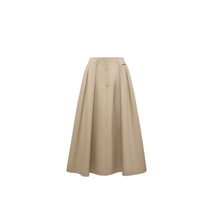 Softly pleated, this mid-length skirt encapsulates the collection's feminine aesthetic. The cotton gabardine design is completed by a logo label, subtly nodding to brand heritage.