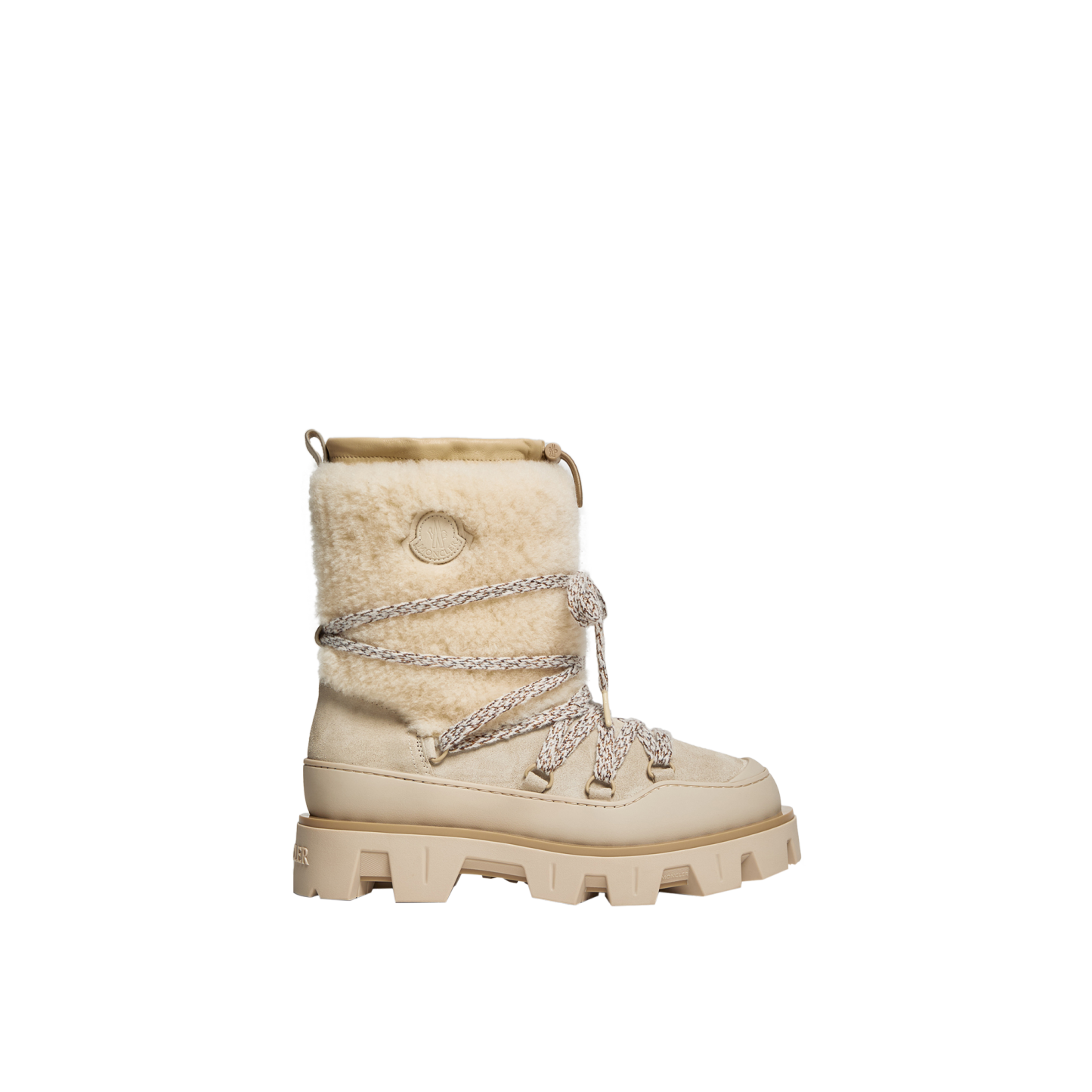 - Long-haired lambskin and suede upper