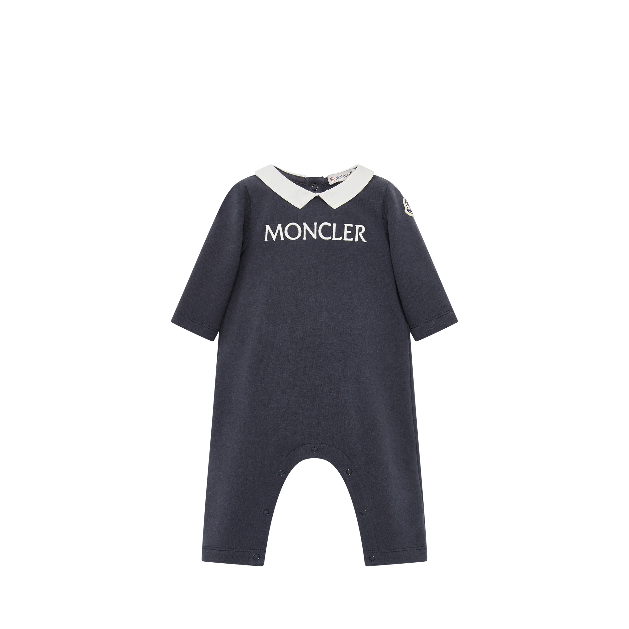 Crafted from stretch cotton fleece, this baby grow is a comfortable essential. The onesie comes with a contrasting Peter Pan collar and is embellished with an embroidered logo. Snap div closure eases dressing.