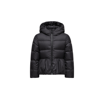 A whimsical take on the classic puffer, the Elizaveta down jacket features a ruched hem. The design is completed with a cocooning hood, perfect for outdoor fun even on rainy days.