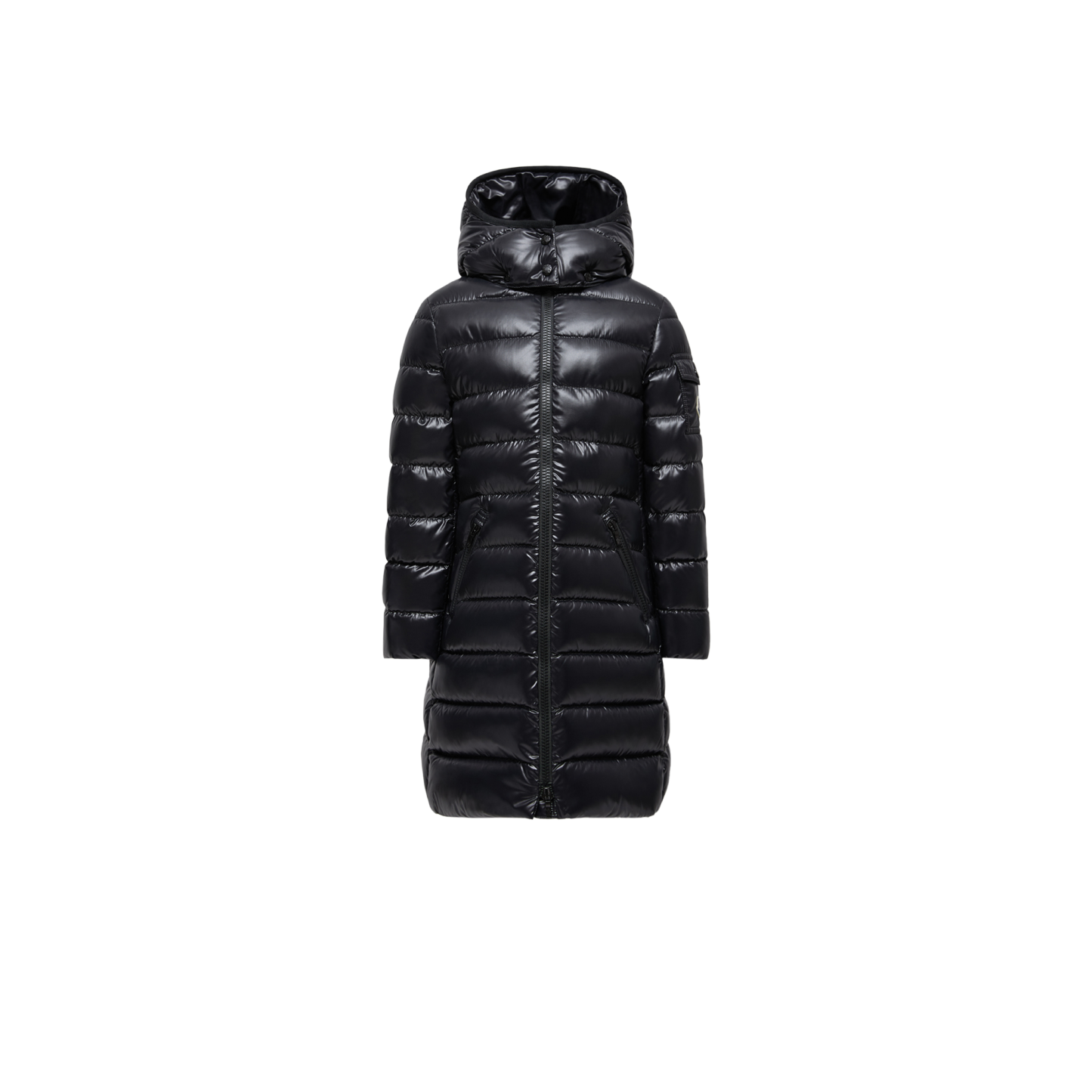 A classic monthtcler design reimagined for little ones, the Moka down jacket draws from the women's collection. The long puffer is crafted from iconic nylon laqué, offering both down proof and water-repellent protection. A cocooning, detachable hood completes the style, making it a key addition to your child's wardrobe.