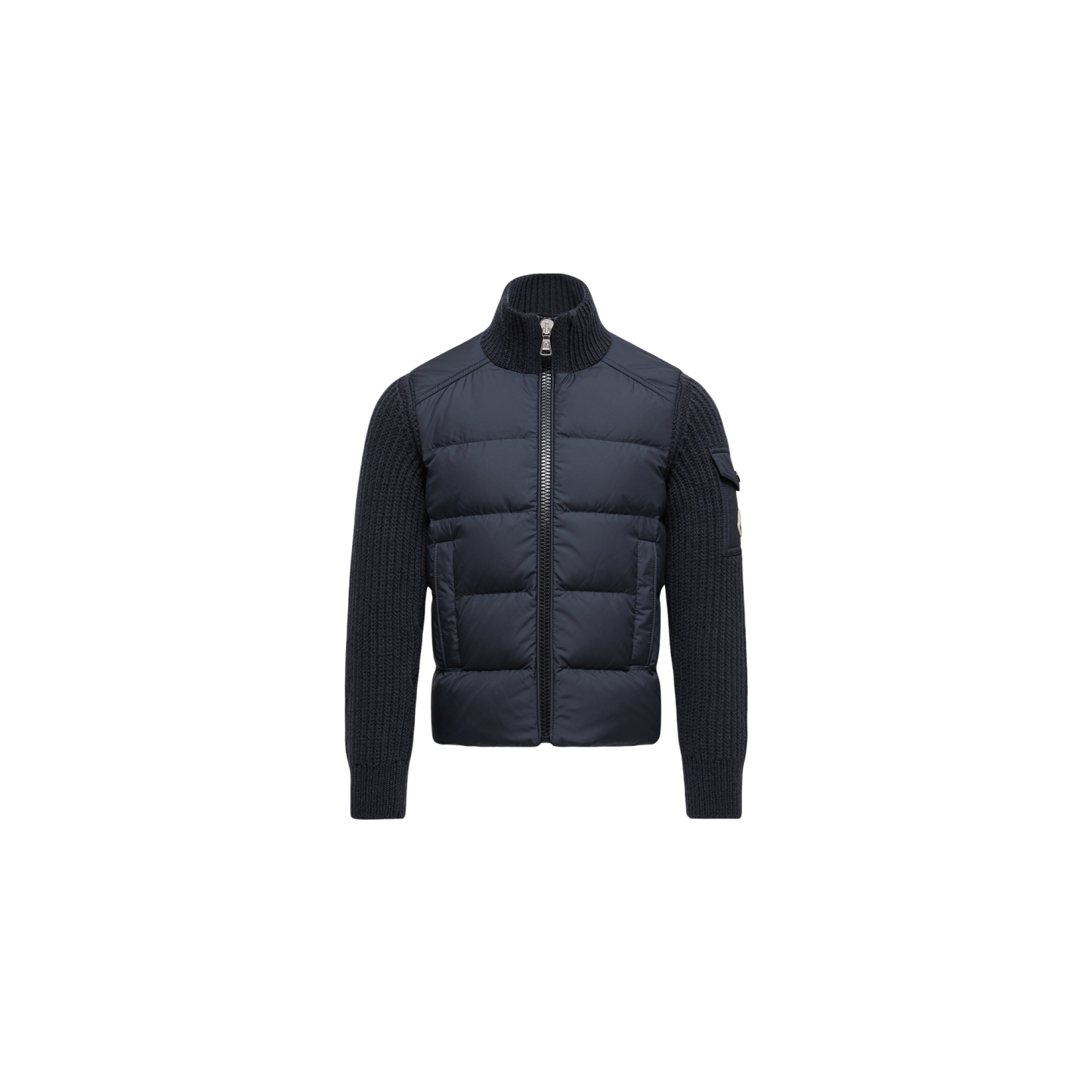 Perfect for daily strolls or outdoor games, this cardigan is made from carded wool. Featured in a turtleneck silhouette with zipper closure, the knit is further enhanced with a down-filled front.