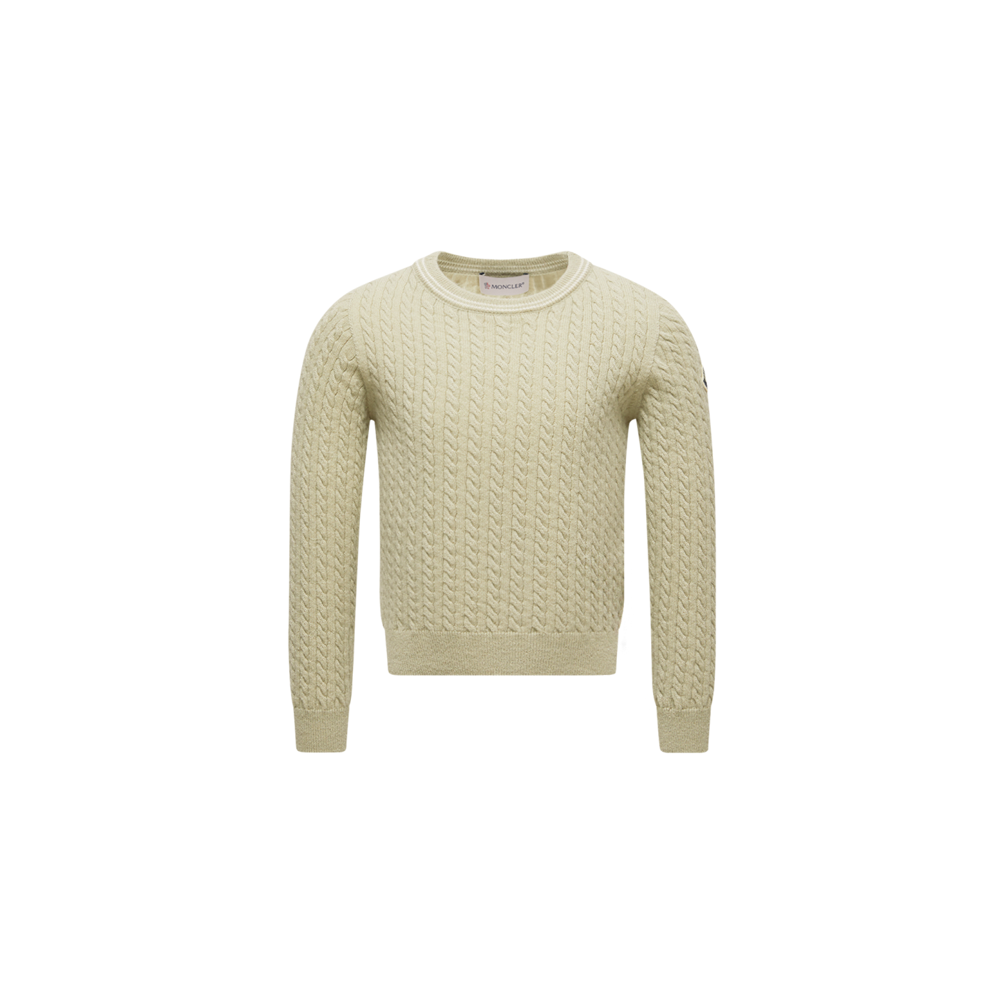 Fit for indoor or outdoor playdates, this crew neck sweater is a cozy wardrobe addition. Crafted from warm wool, the style features cable and ribbed knitting for added texture. A subtle striped trim along the collar provides the perfect finishing touch.