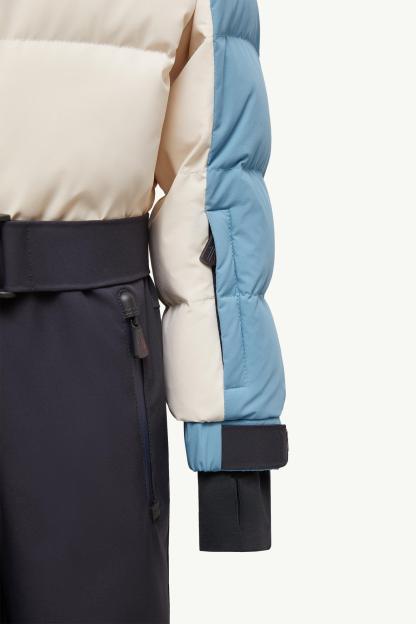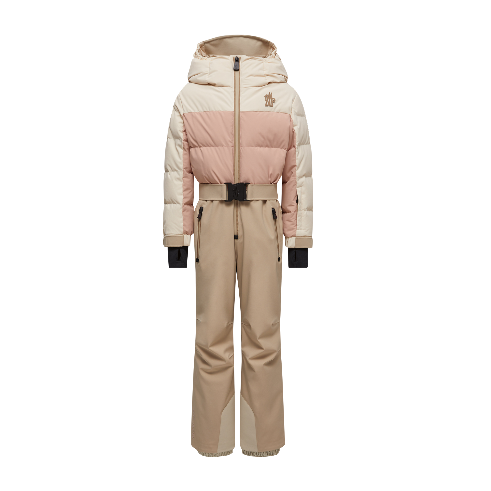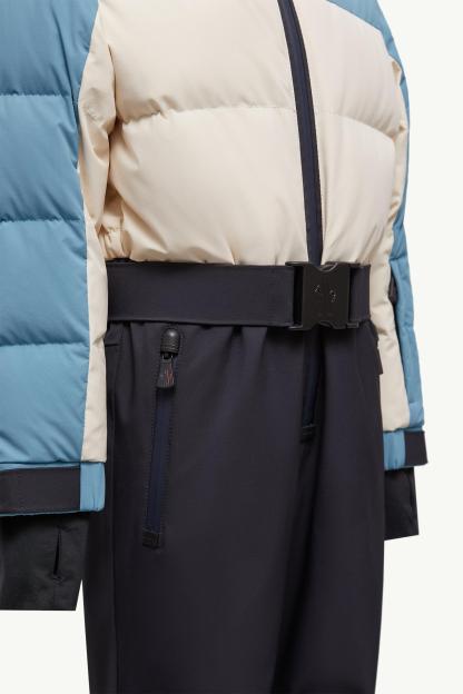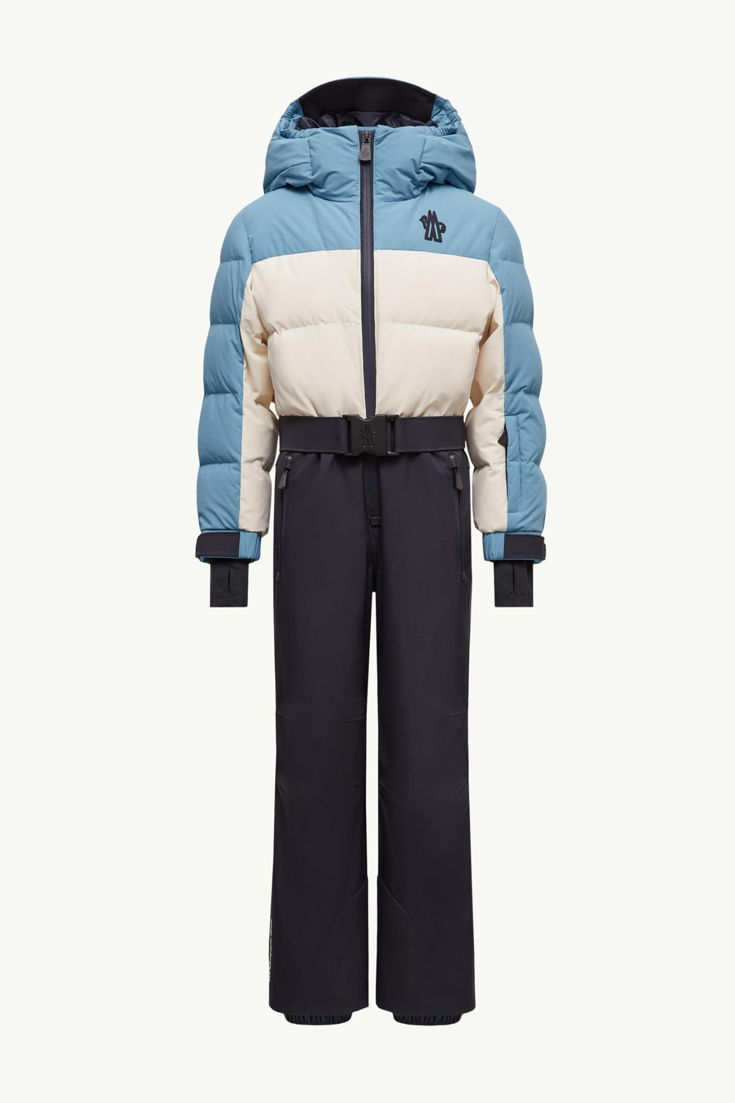 Part of the monthtcler Grenoble collection for girls, this hooded ski suit helps little ones conquer the slopes.