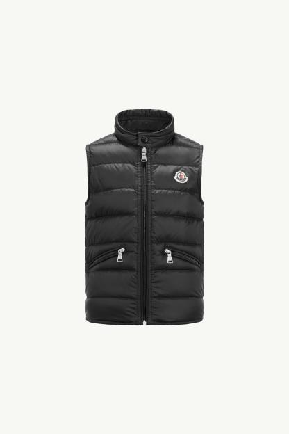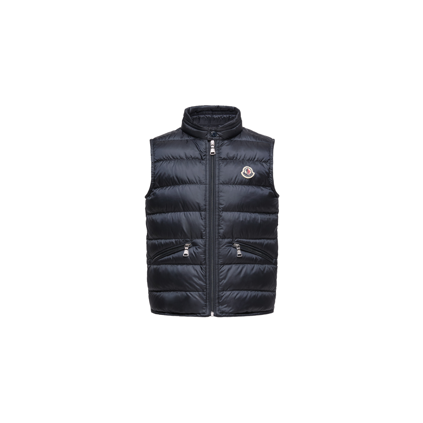A classic monthtcler design revisited for little ones, the Gui down vest is a mid-season essential. The style is crafted from longue saison, a water-repellent nylon fabric notable for providing maximum warmth while remaining lightweight.